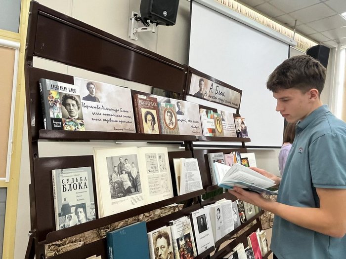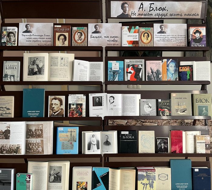 Для участников лекциия была подготовлена книжная выставка «Не может сердце жить покоем…», посвященная жизни и творчеству Александра Блока. На выставке были представлены избранные издания произведений поэта, биографические материалы, в том числе книги известных исследователей творчества Блока, воспоминания о поэте современников, а также его письма и др.