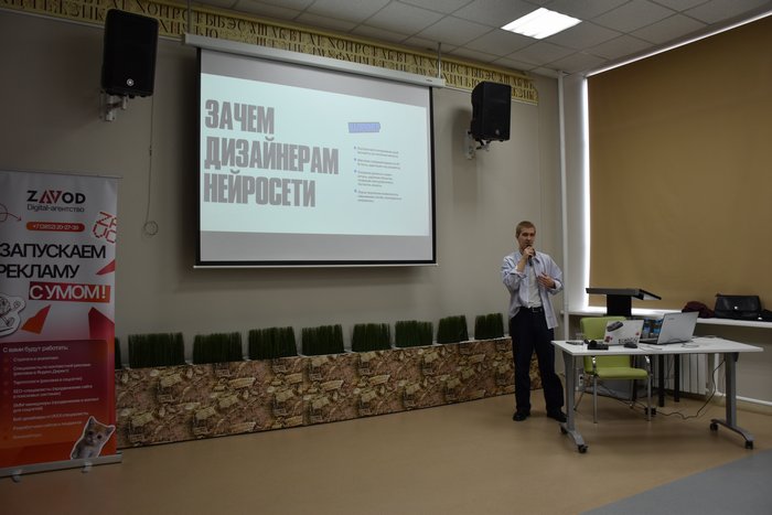 Продолжилась Неделя мастер-классом от сотрудников коммуникационного агентства «Завод» Ивана Томченко, Валентины Черепановой и Ивана Яковлева. Участники познакомились с практическим опытом применения современных систем искусственного интеллекта в создании сайтов, генерации изображений и контента для социальных сетей в целях продвижения малого бизнеса.