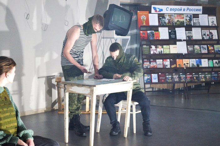 Эта преемственность связала воедино литературную композицию, исполненную студентами Барнаульского кооперативного техникума, в основу которой легли стихи известных советских поэтов Булата Окуджавы, Давида Самойлова, Юлии Друниной, Константина Симонова, Роберта Рождественского, Евгения Евтушенко о Великой Отечественной войне, с последовавшим за ним показом сцен из спектакля «Здесь все по-другому» по произведению «Я здесь не женщина, я фотоаппарат» Анны Долгаревой, поэта, журналиста, военкора, писателя, в исполнении актеров «Театра на Сибирском» Алтайского краевого колледжа культуры и искусств (преподаватель Кирилл Сергеевич Поздняков). Игра студенческого театрального коллектива была проникновенной, пронзительной и произвела большое впечатление на всех собравшихся, став достойным аккордом «Эстафеты доброты – 2025», проведенной в Шишковке.