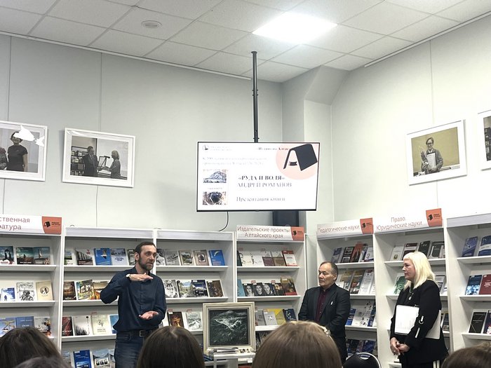19 марта в выставочном зале краевой библиотеки в рамках XXI краевого фестиваля книги «Издано на Алтае» состоялась презентация книги «Руда и воля» Андрея Николаевича Романова, известного ученого, главного научного сотрудника, заведующего лабораторией физики атмосферно-гидросферных процессов ИВЭП СО РАН.