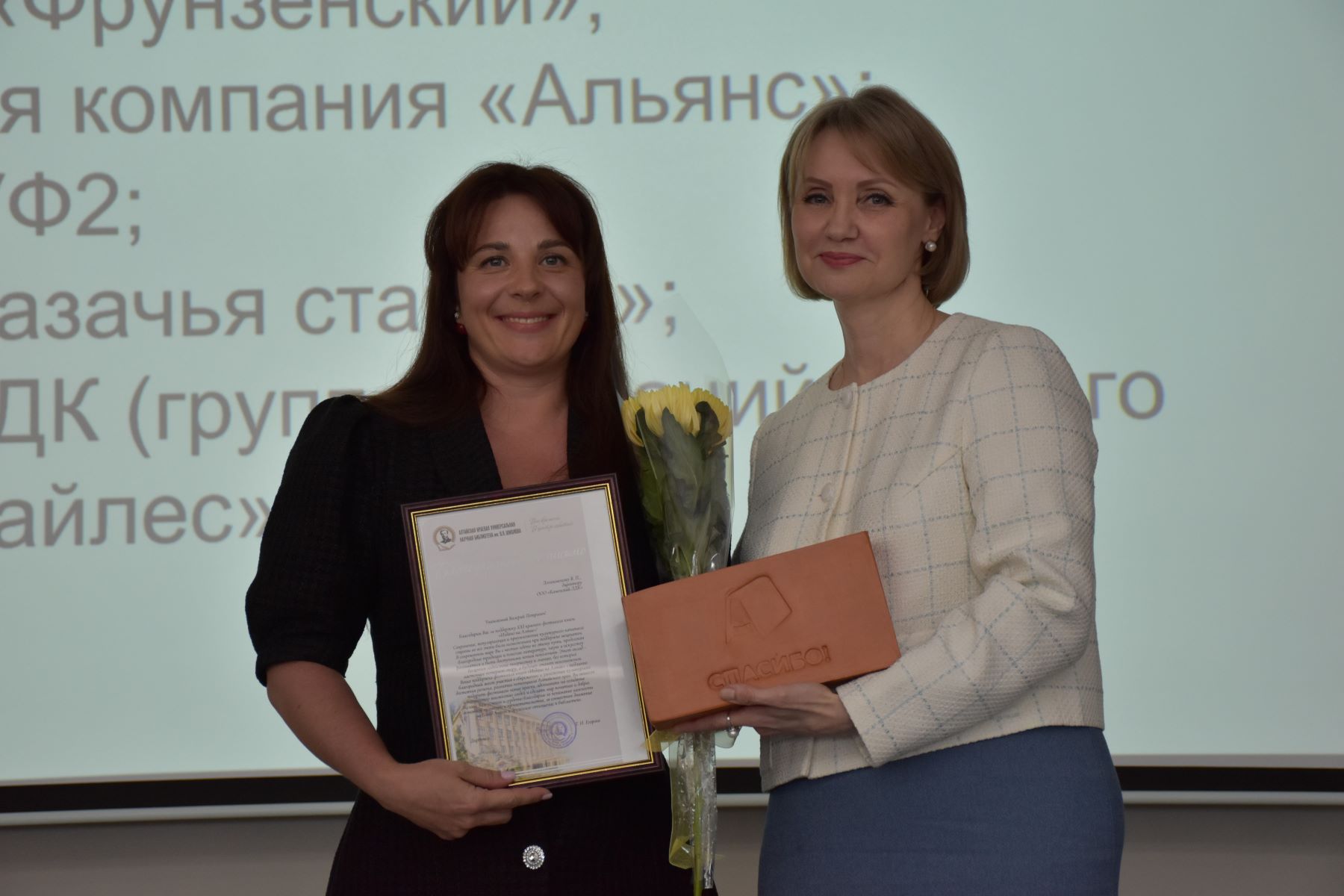 Продолжая традицию говорить «увесистое спасибо» партнерам, которые вместе с нами три года, в этом году наши сувенирные, но внушительные кирпичи с логотипом фестиваля вручены семи предприятиям: «ПродСнабАлтай», «Казачья станица», СПК «Колхоз Фрунзенский», «СК Альянс», «Каменский лесодеревоперерабатывающий комбинат», «Руф-2» и «Михайловский завод химических реактивов».