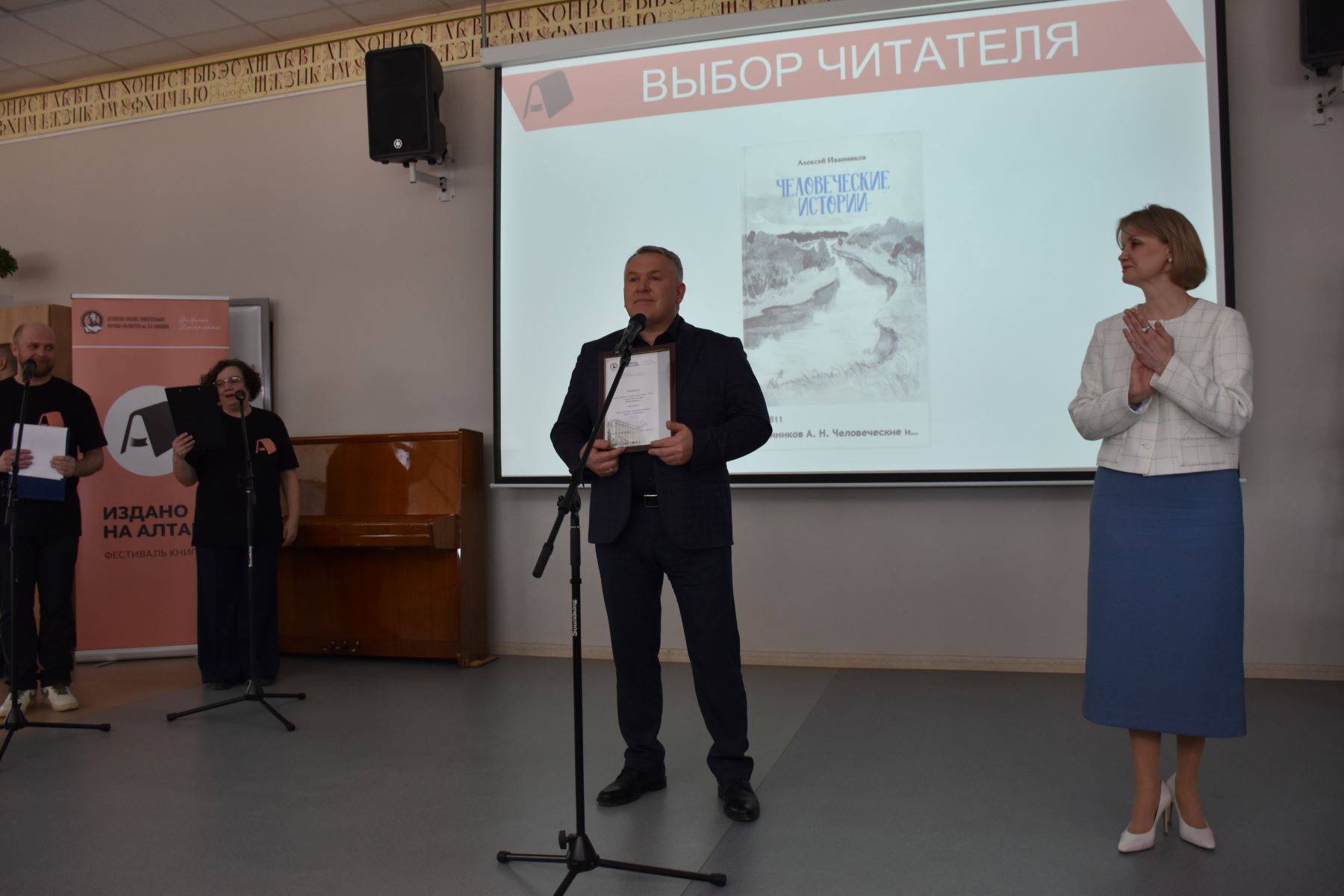 Пока гости наслаждались встречами с новыми авторами, интересными экспертами и обретали полезные знания, члены жюри «Лучшая книга Алтая» трудились над выбором достойнейших изданий. В этом году короткий список включал 33 позиции, и именно он во второй раз в истории конкурса был предложен и для открытого голосования в номинации «Выбор читателя». В итоге пользователи сайта «Шишковки» отдали победу сборнику рассказов «Человеческие истории» А. Иванникова: издание получило 4811 голосов из 10572. А что же решила судейская коллегия? Лучших в этом году определял следующий состав жюри: